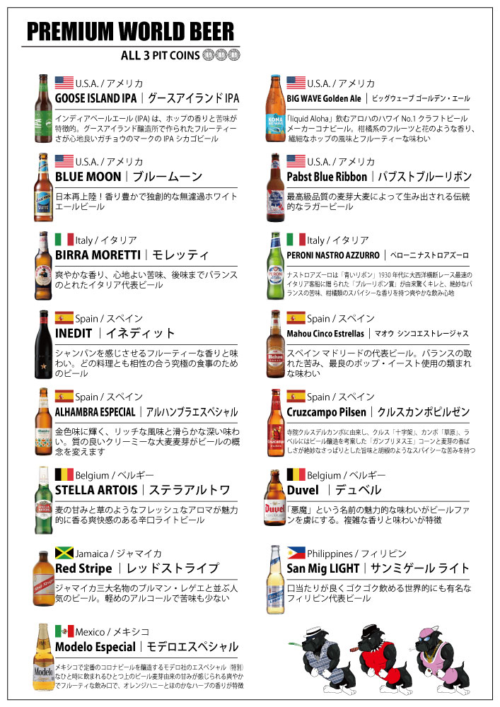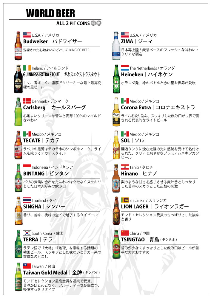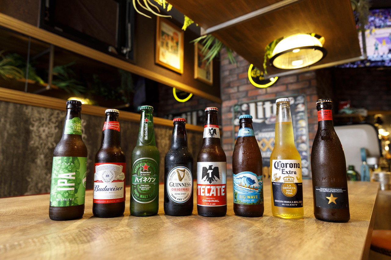 PITBULL BROTHERSでは24種類の世界の瓶ビールを取り揃えております。 女性にも飲みやすいハワイのビールや、珍しい東南アジアのビールもございます。