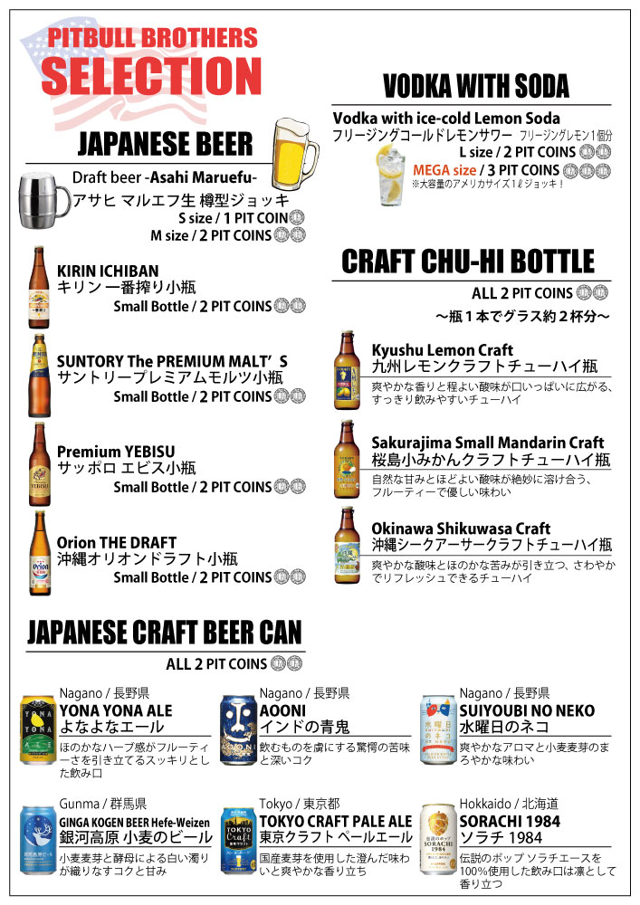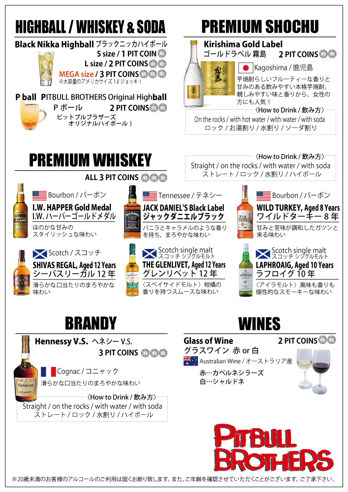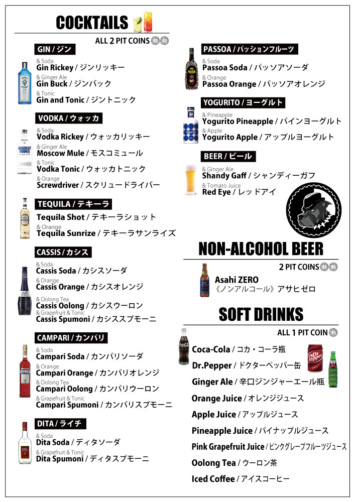 店内専用通貨 ¥1,000 = 3 PIT COINS (お買い求めは¥1,000~)