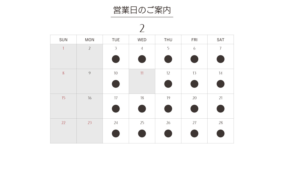2月営業日のお知らせ