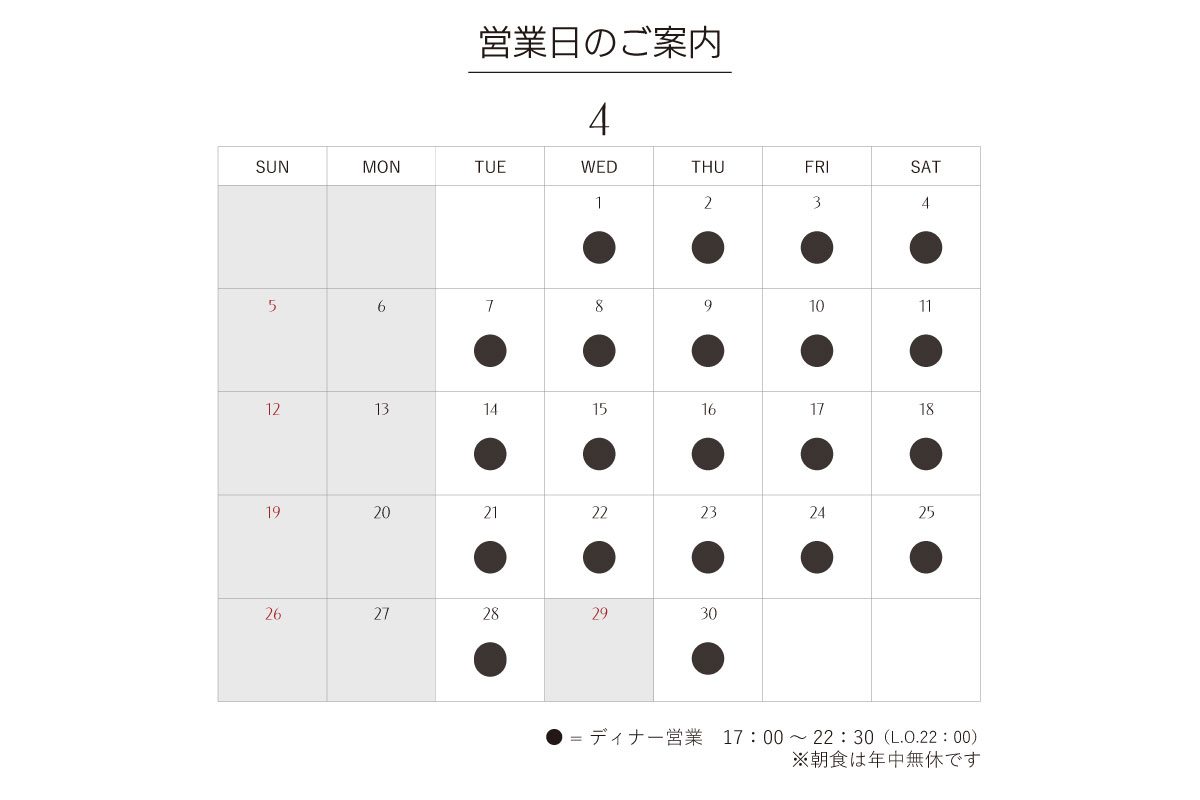 4月営業日のお知らせ