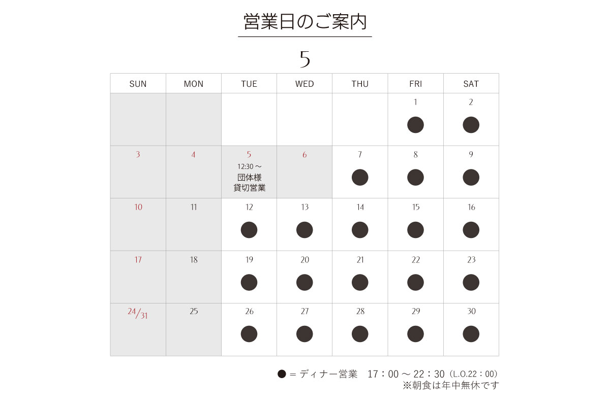 5月営業日のお知らせ